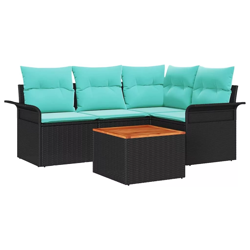 Kerti Kanapé Szett tárolóval 5 pcs Fekete és Türkiz polirattan