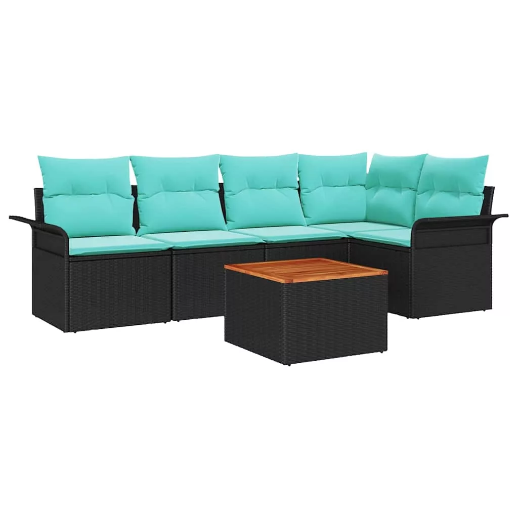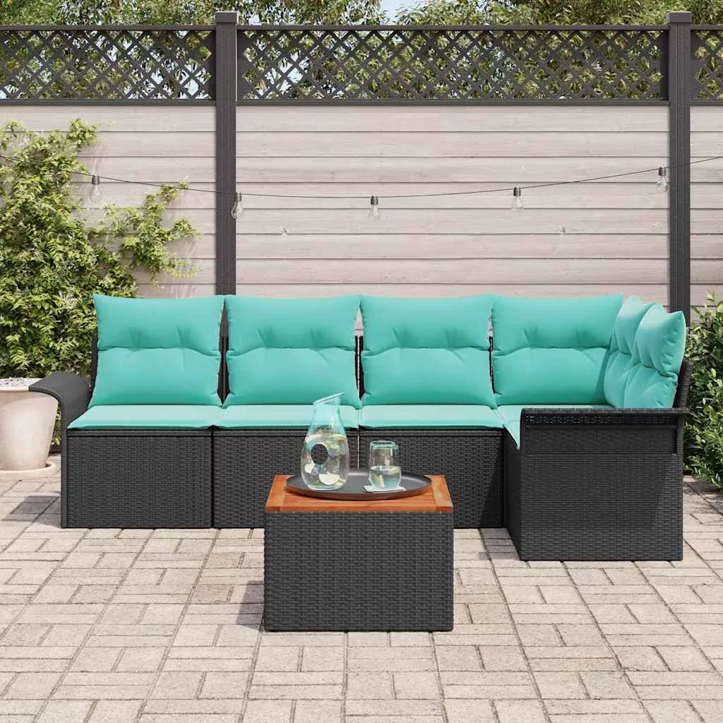 Kerti Kanapé Szett tárolóval 6 pcs Fekete és Türkiz polirattan
