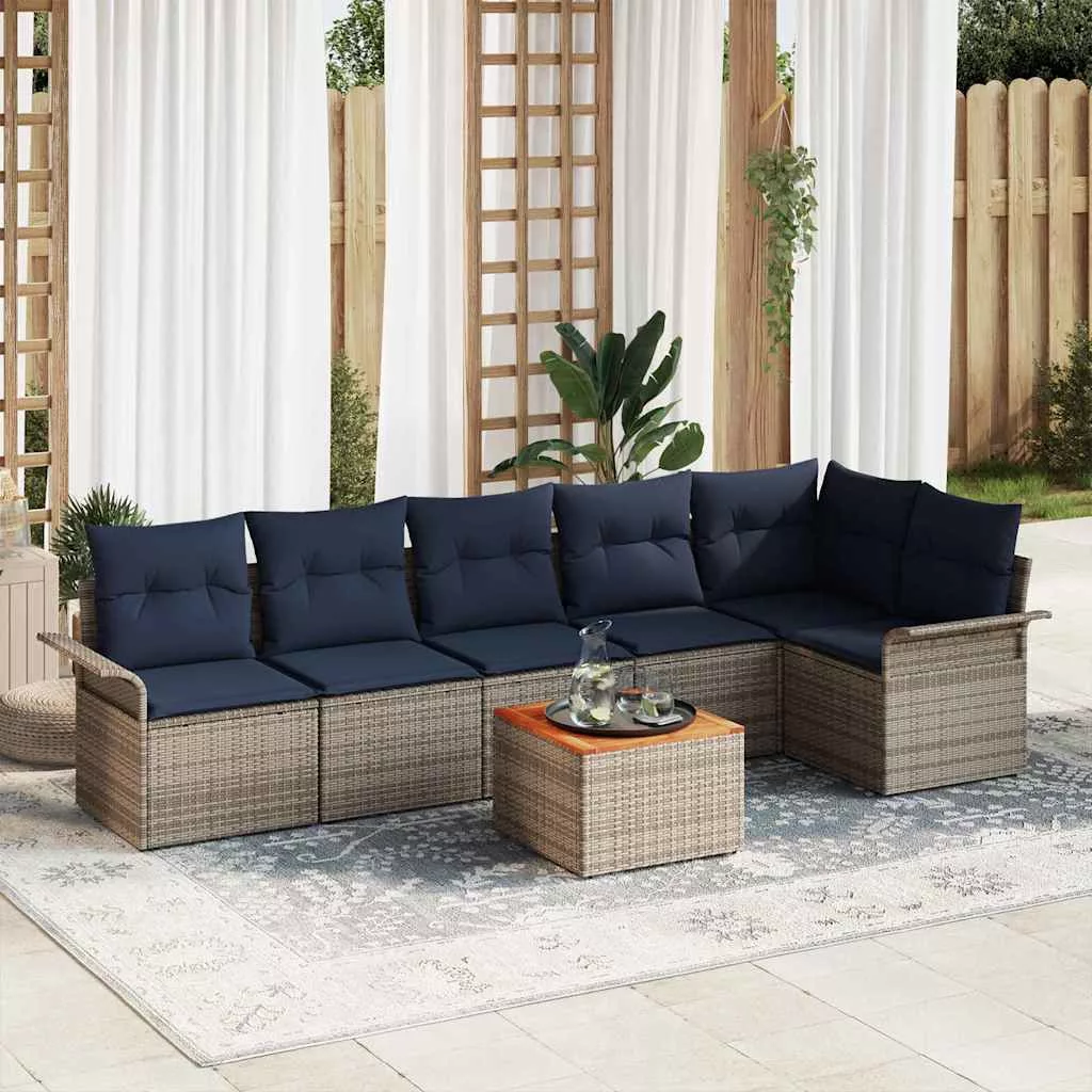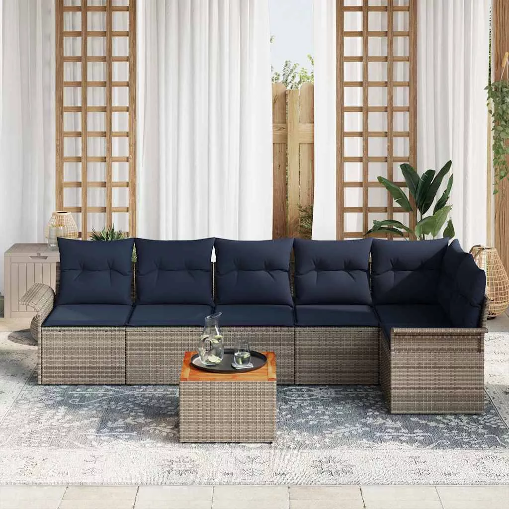Kerti Kanapé Szett 7 pcs Szürke és sötétkék polirattan