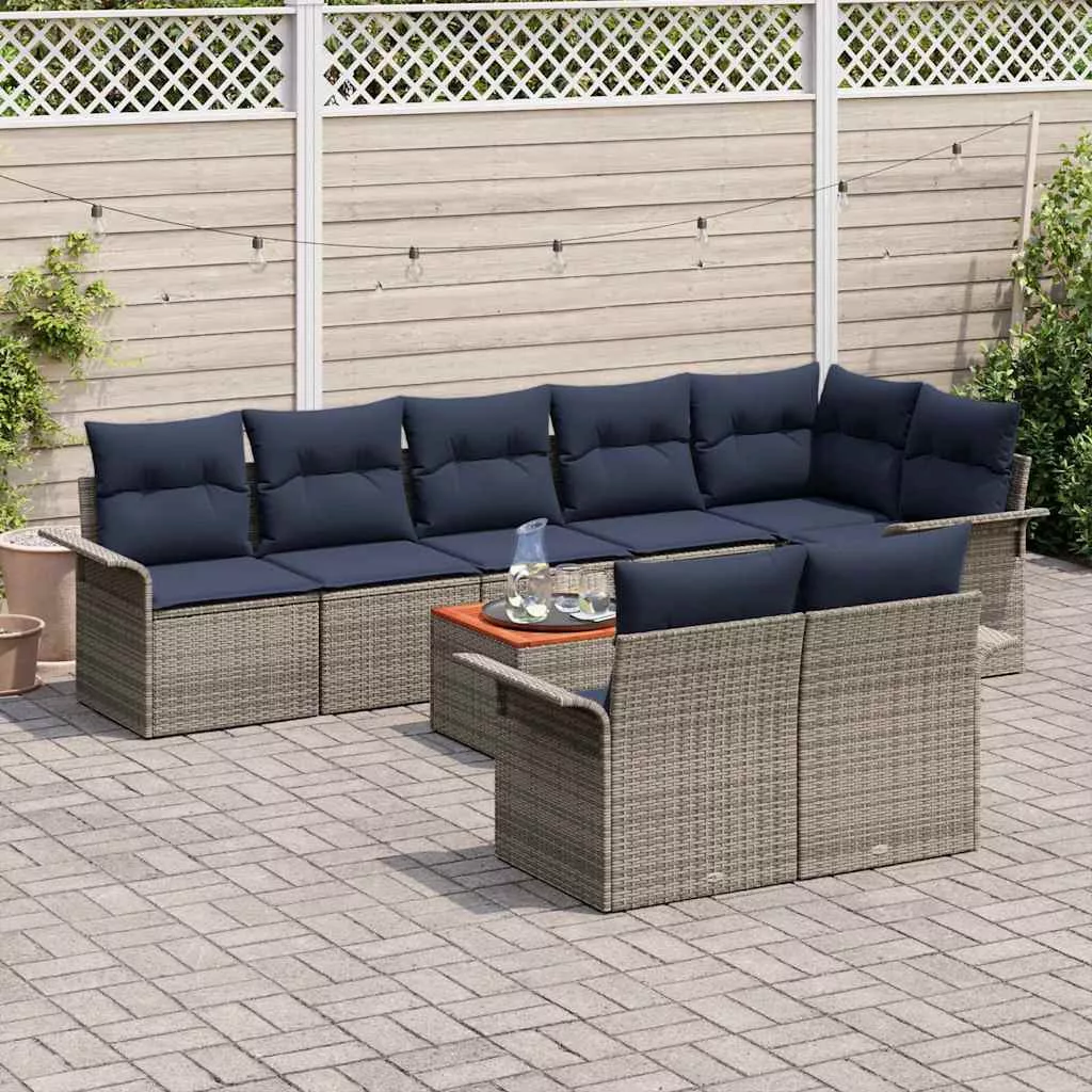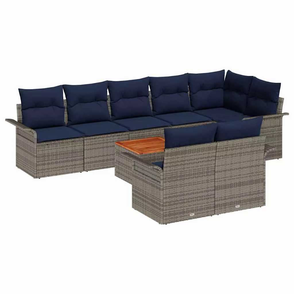 Kerti Kanapé Szett 9 pcs Szürke és sötétkék polirattan