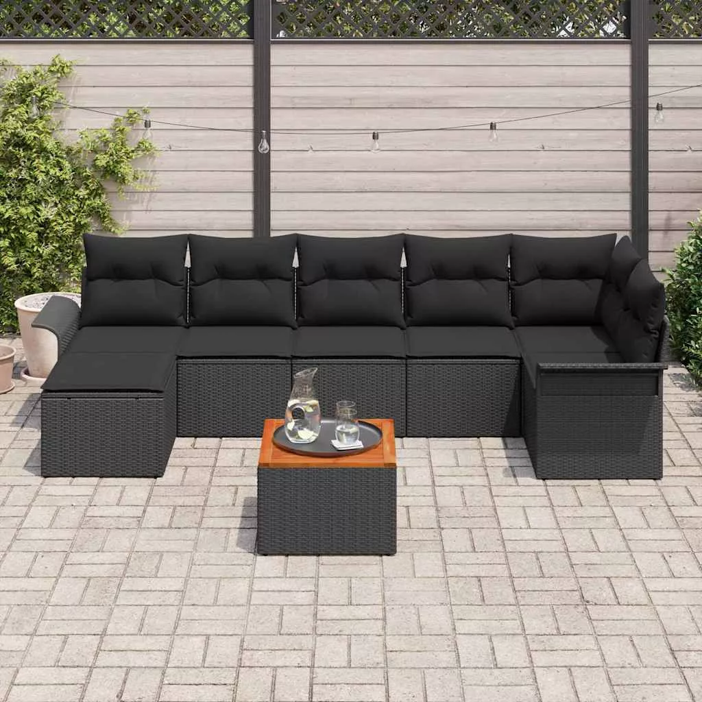 Kerti Kanapé Szett tárolóval 8 pcs Fekete polirattan