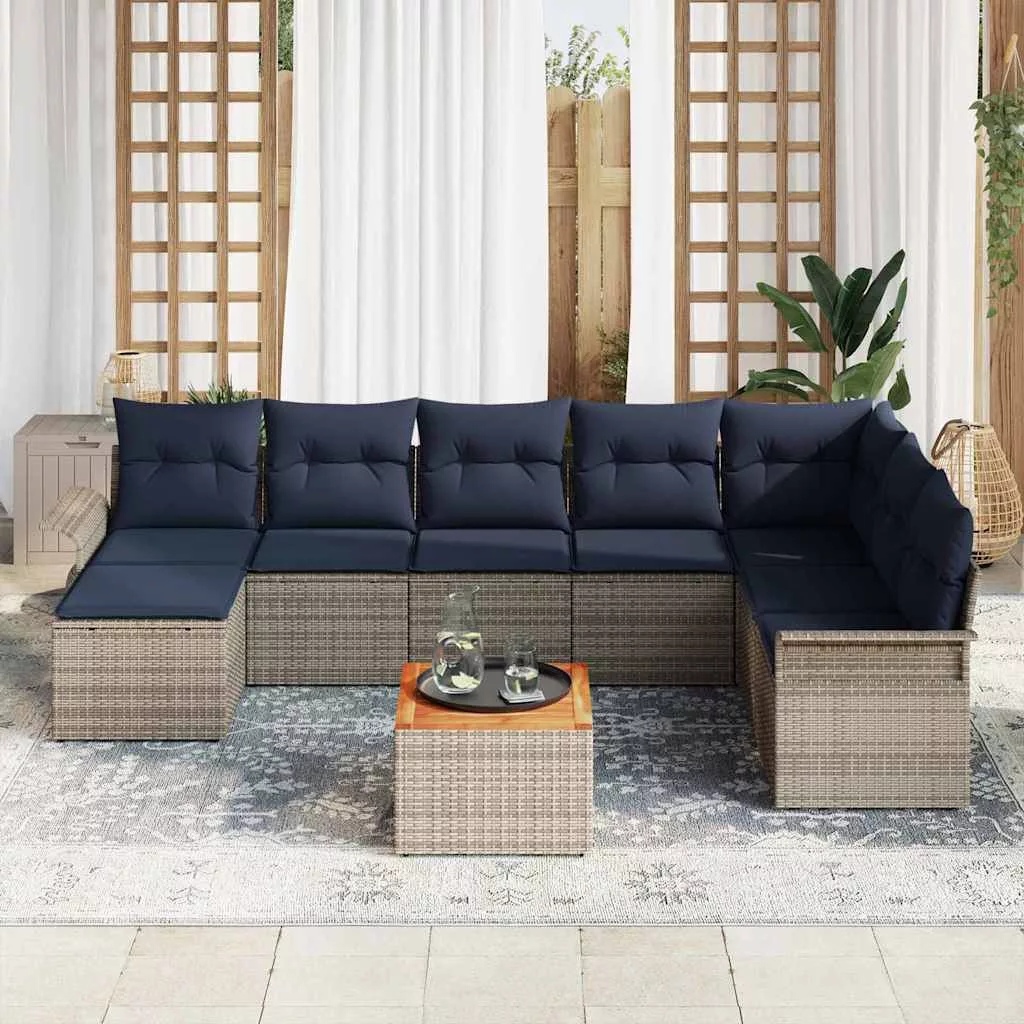 Kerti Kanapé Szett 9 pcs Szürke és sötétkék polirattan