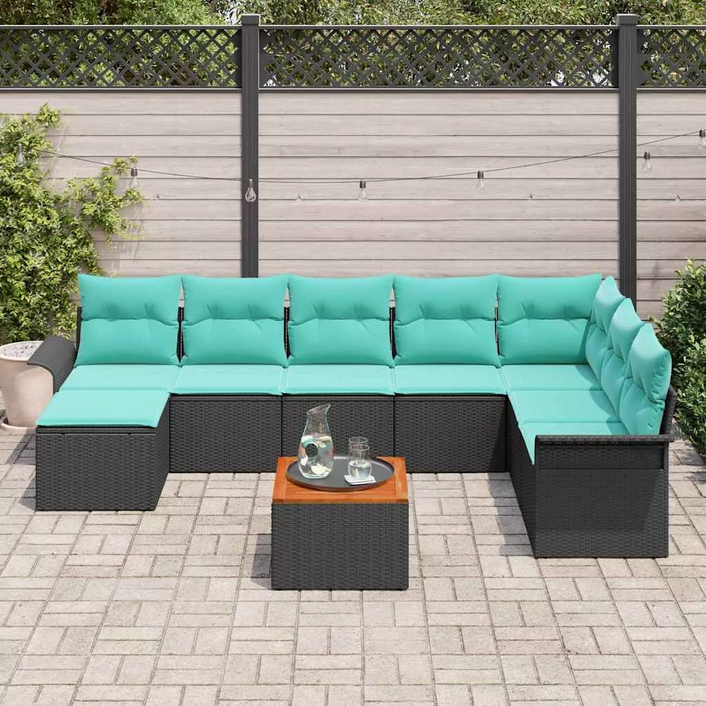 Kerti Kanapé Szett tárolóval 9 pcs Fekete és Türkiz polirattan