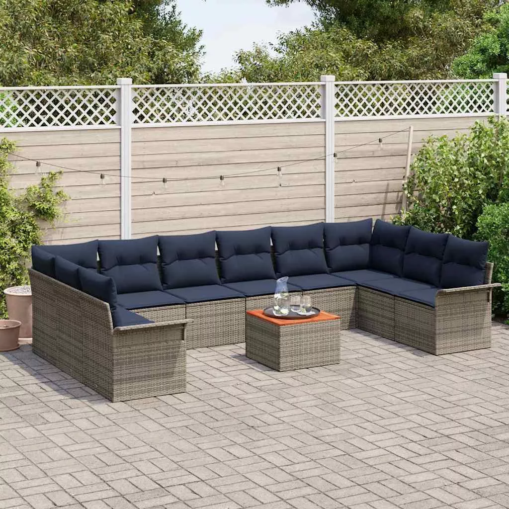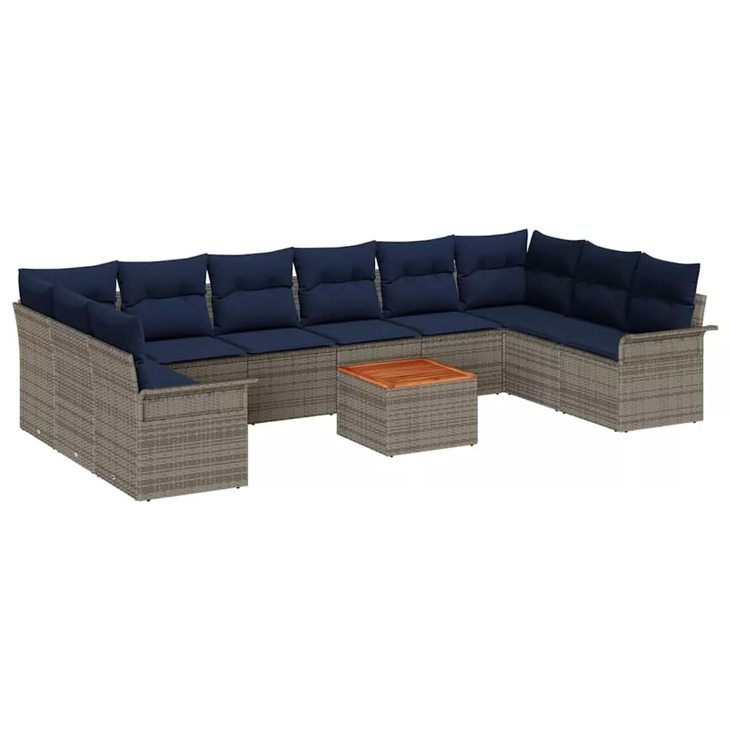 Kerti Kanapé Szett 11 pcs Szürke és sötétkék polirattan