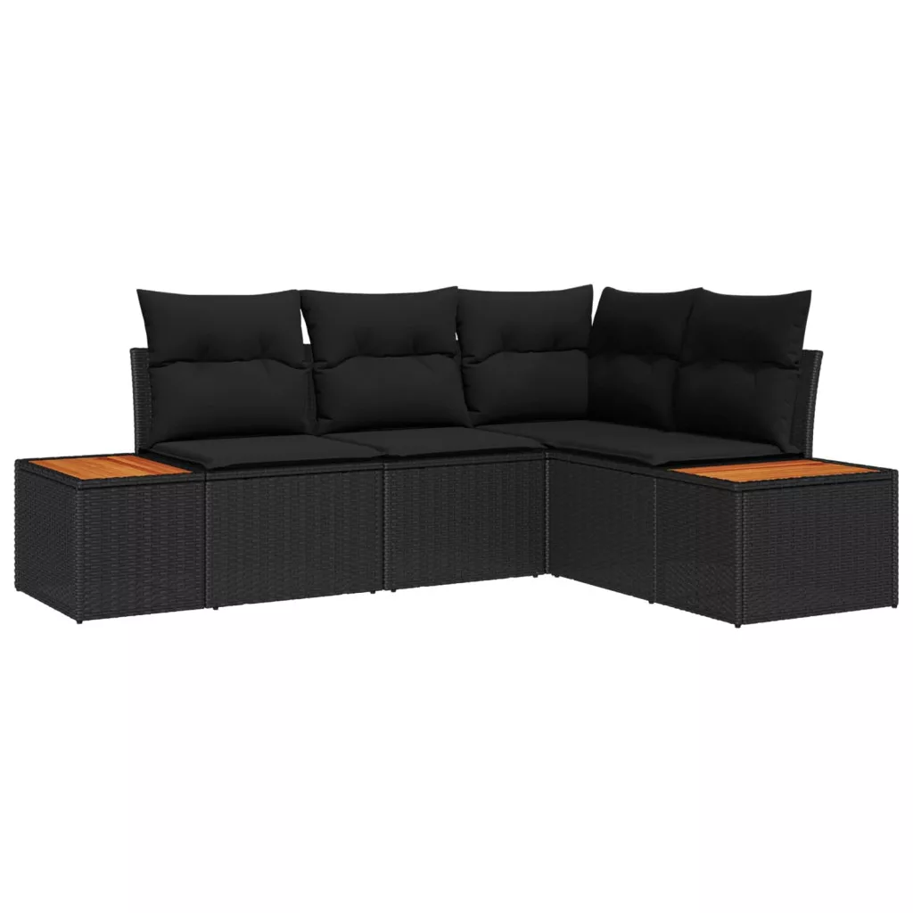 Kerti Kanapé Szett párnával tárolóval 4 pcs Fekete Polyrattan