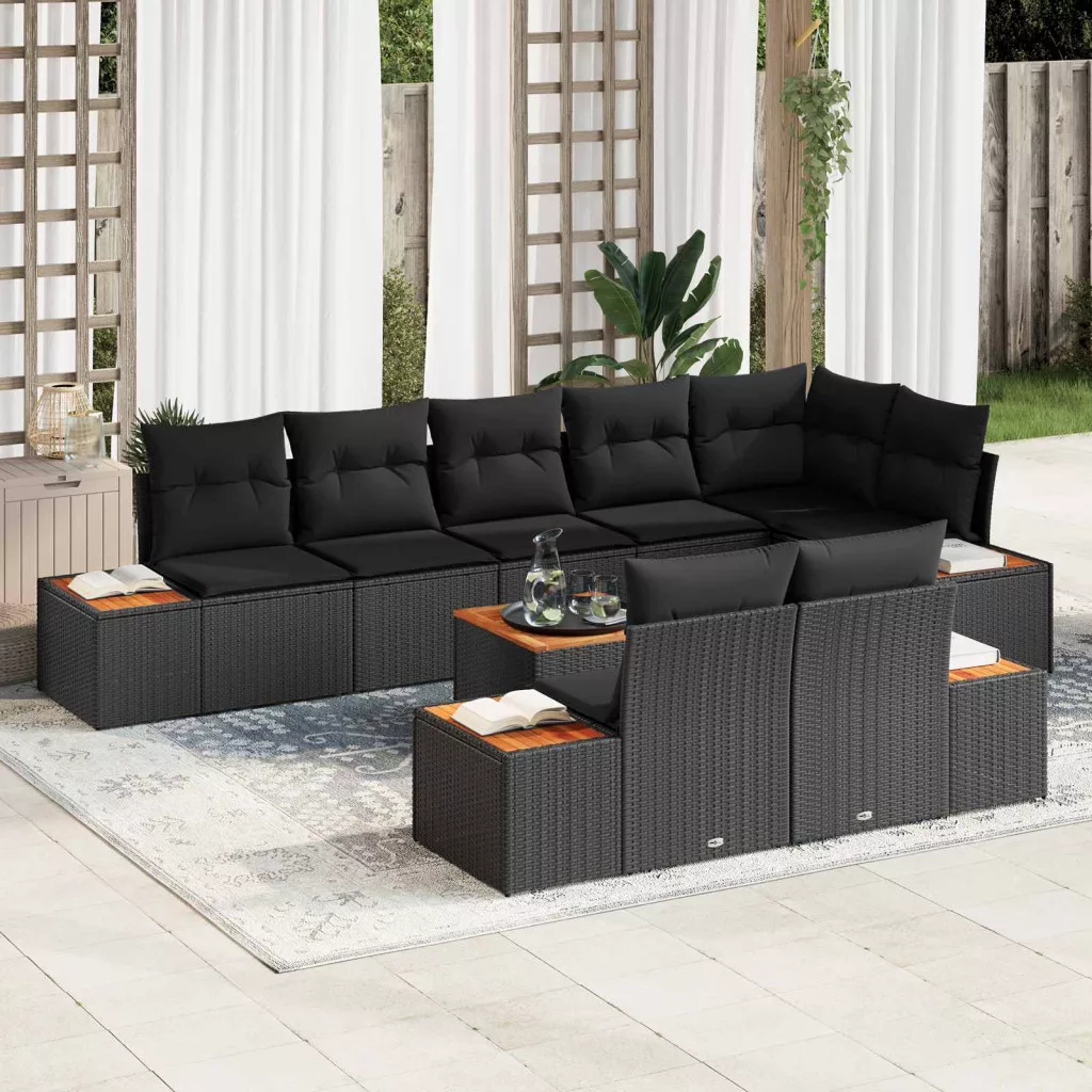 Kerti Kanapé Szett párnával tárolóval 8 pcs Fekete Polyrattan