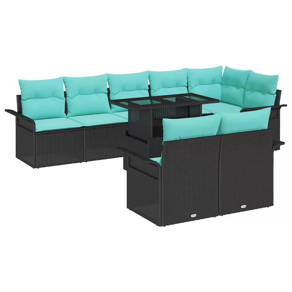 Kerti Kanapé Szett párnával tárolóval 9 pcs Fekete Poly Rattan