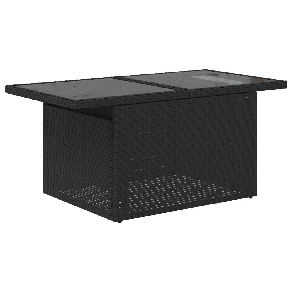 7 Részes Kerti Kanapé Szett Párnákkal Fekete Poli Rattan