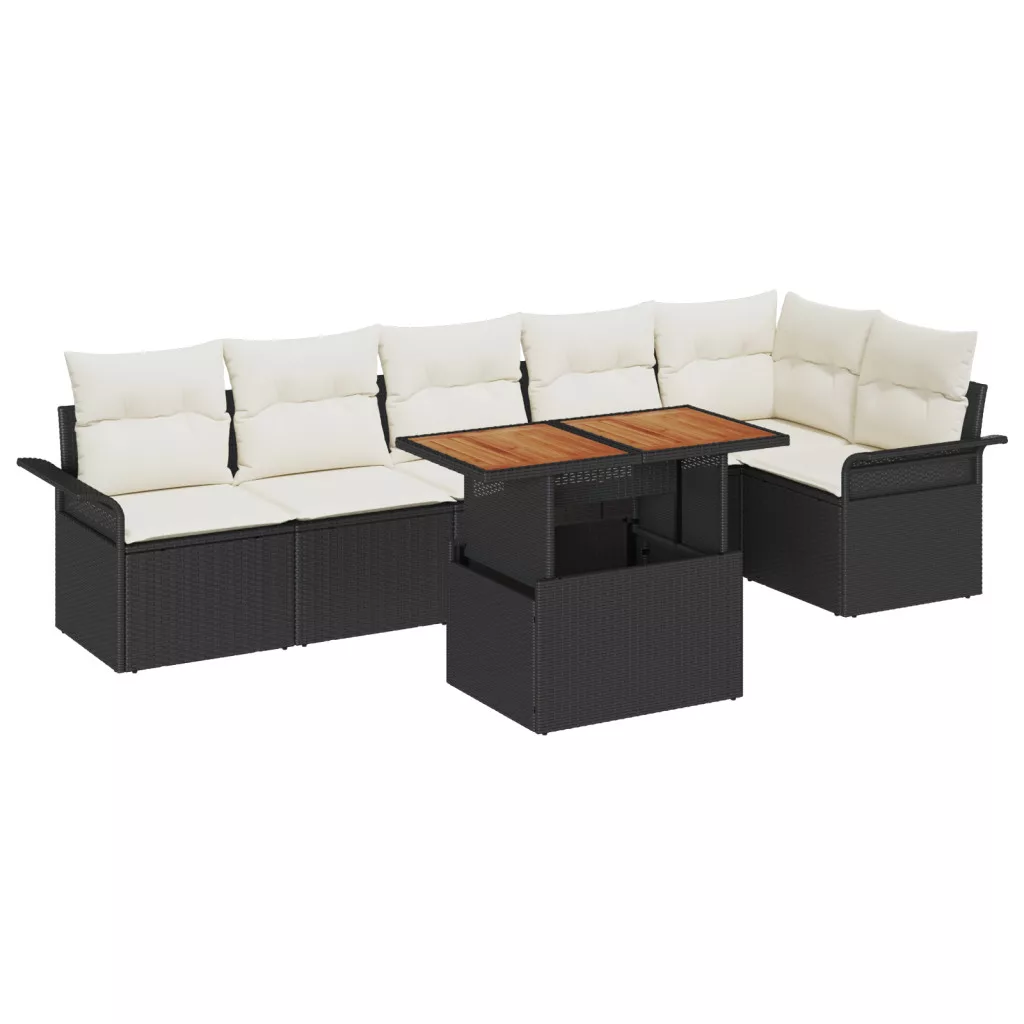 7 részes kert kanapé szett párnákkal fekete poli rattannal