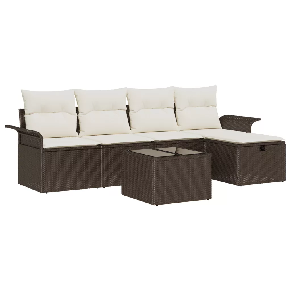 6 darabos Kertibútor Szett Párnákkal Barna Polirattan