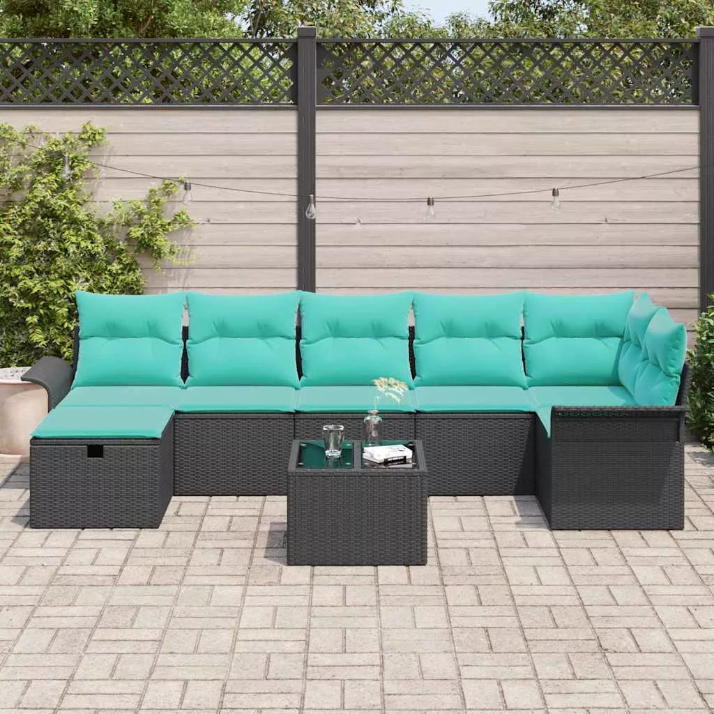 Kerti Kanapé Szett párnával 8 pcs Fekete és Türkiz polirattan