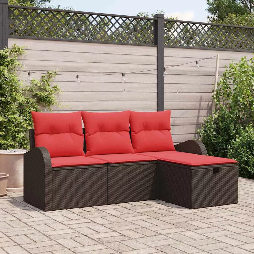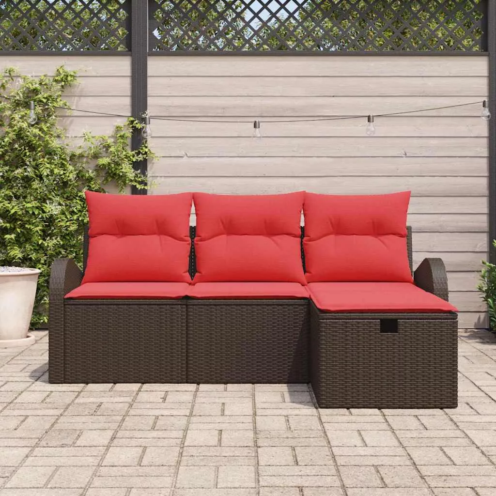 Kanapé Szett párnával tárolóval 4 pcs Barna és Piros polirattan