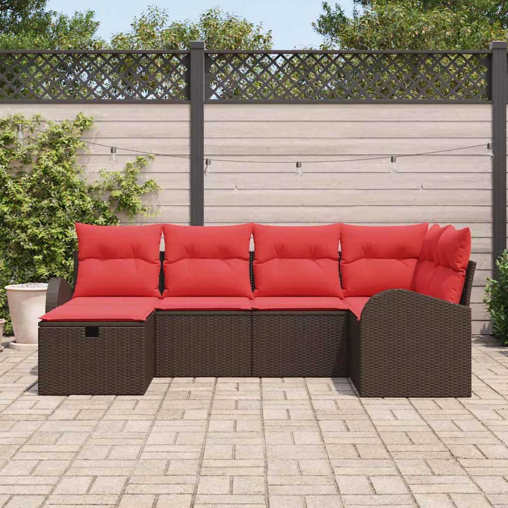 Kanapé Szett párnával tárolóval 6 pcs Barna és Piros polirattan
