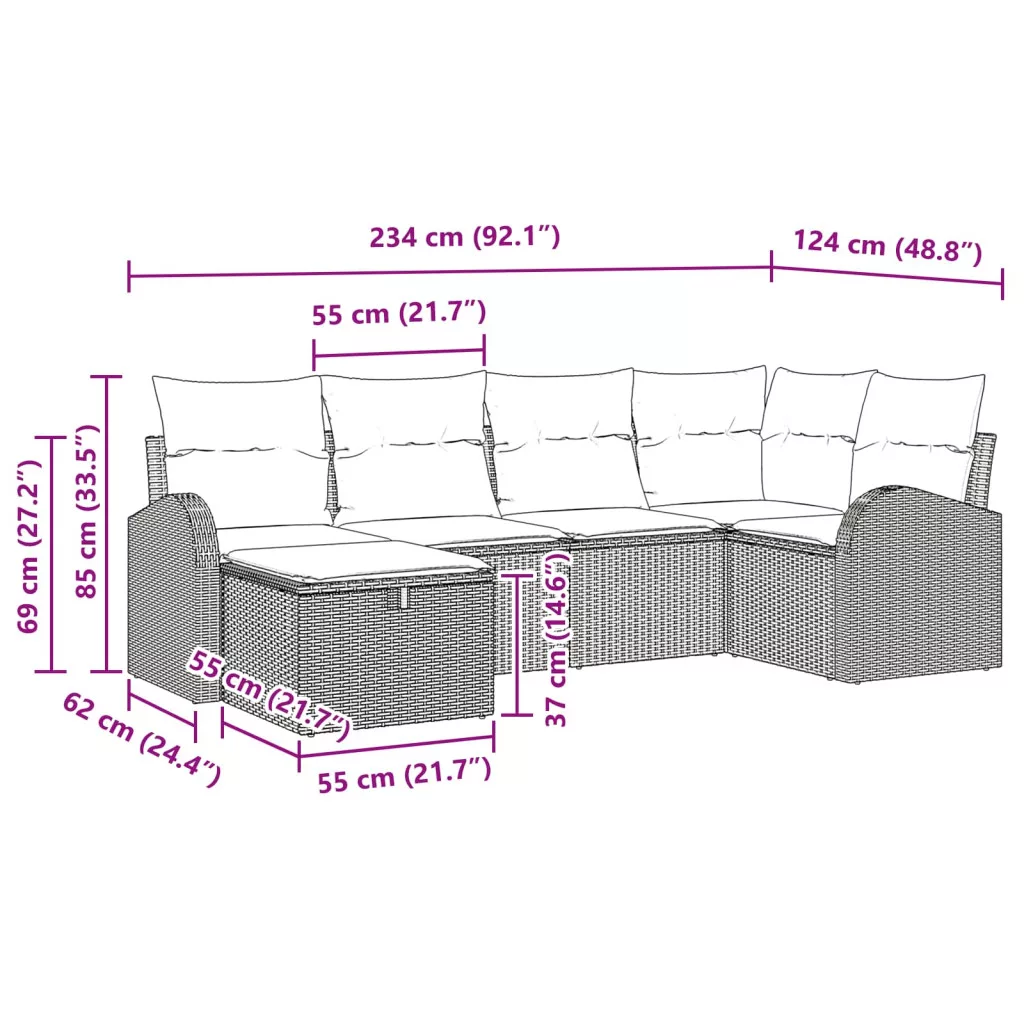 Ez a kert kanapé szett a modern egyszerűség és funkció megtestesülése, ami bármilyen kültéri teret pihentető menedékké alakít. Sleek dizájnja és tartós poli rattan anyaga tökéletesítik a kertek és teraszok stílusát, így ideális a kulturált pihenéshez. Tavaszi és nyári használatra kiváló, lehetővé téve, hogy élvezd a szezonális összejöveteleket vagy a nyugodt pillanatokat a természet közepette. A design és a praktikum szoros összhangban van, ígérve, hogy javítja a kültéri élményeket. Minőségi poli rattan anyag: A kezelés kiváló minőségű poli rattanból készült, ami ügyesen ellenáll az időjárás viszontagságainak. Stabil és UV-álló, így a bútor sokáig élénk marad a napfény és eső ellenére. Ez az anyagválasztás az elköteleződést mutatja a hosszú élettartam és a könnyű karbantartás iránt. Karbantartó és váz kialakítás: A szett ívelt poli rattan kartámaszokkal és porszórt acél vázzal rendelkezik. Ezzel a váz stabilitást hoz a designba, míg a kartámaszok kényelmes támaszt kínálnak, ötvözve a stílust és a praktikát. Funkcionális jellemzők: Moduláris elemekkel és könnyű, átmozgatható kialakítással ez a kanapé szett könnyen újra lehet rendezni. Kiválóan alkalmazható különböző kültéri alkalmakra, legyen az családi buli vagy intim naplemente nézés. Tartós, az időjárásálló és UV-álló tulajdonságai miatt. Gondos használati opciók: Kertbe és teraszra tökéletes, ez a szett maximalizálja a szabadban elérhető helyet. A nyári bulikhoz vagy a napsütötte délutánok egyedül eltöltött időihez ideális, és nem fog elvenni túl sok helyet. Könnyű karbantartás és gondozás: Minimális karbantartást igényel, így ez a szett egyszerűen kezelhető. Használj huzatot, amikor nem használod, hogy a bútor megőrzi a minőségét az idő próbáján. Ez a könnyedség nyugalmat hoz és meghosszabbítja az élvezetet.