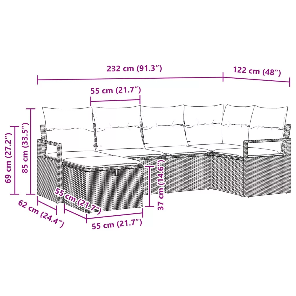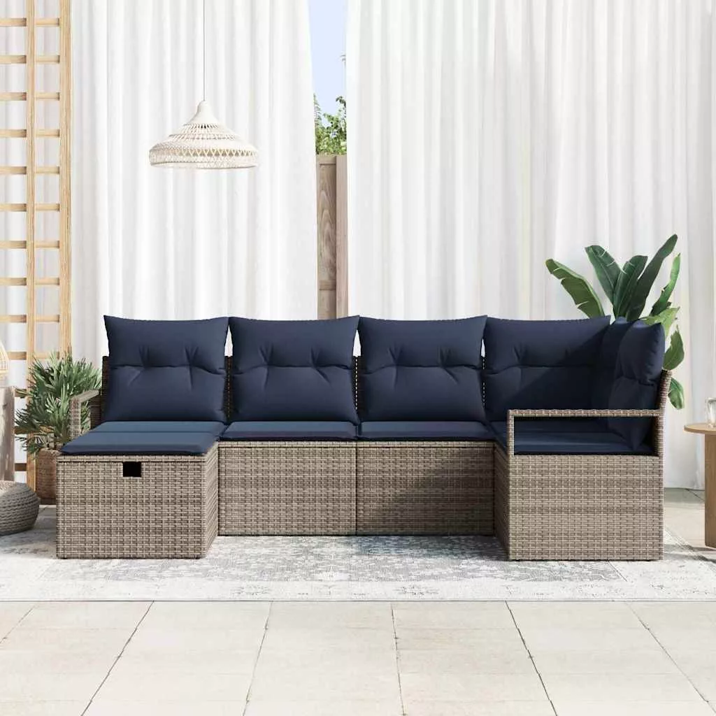 Kanapé Szett párnával Szürke és Tengerész Kék polirattan