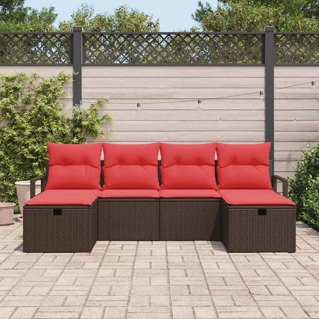 Kanapé Szett párnával tárolóval 6 pcs Barna és Piros polirattan