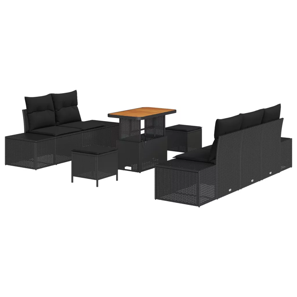 8 darabos kerti kanapé készlet párnákkal fekete poli rattan akácia