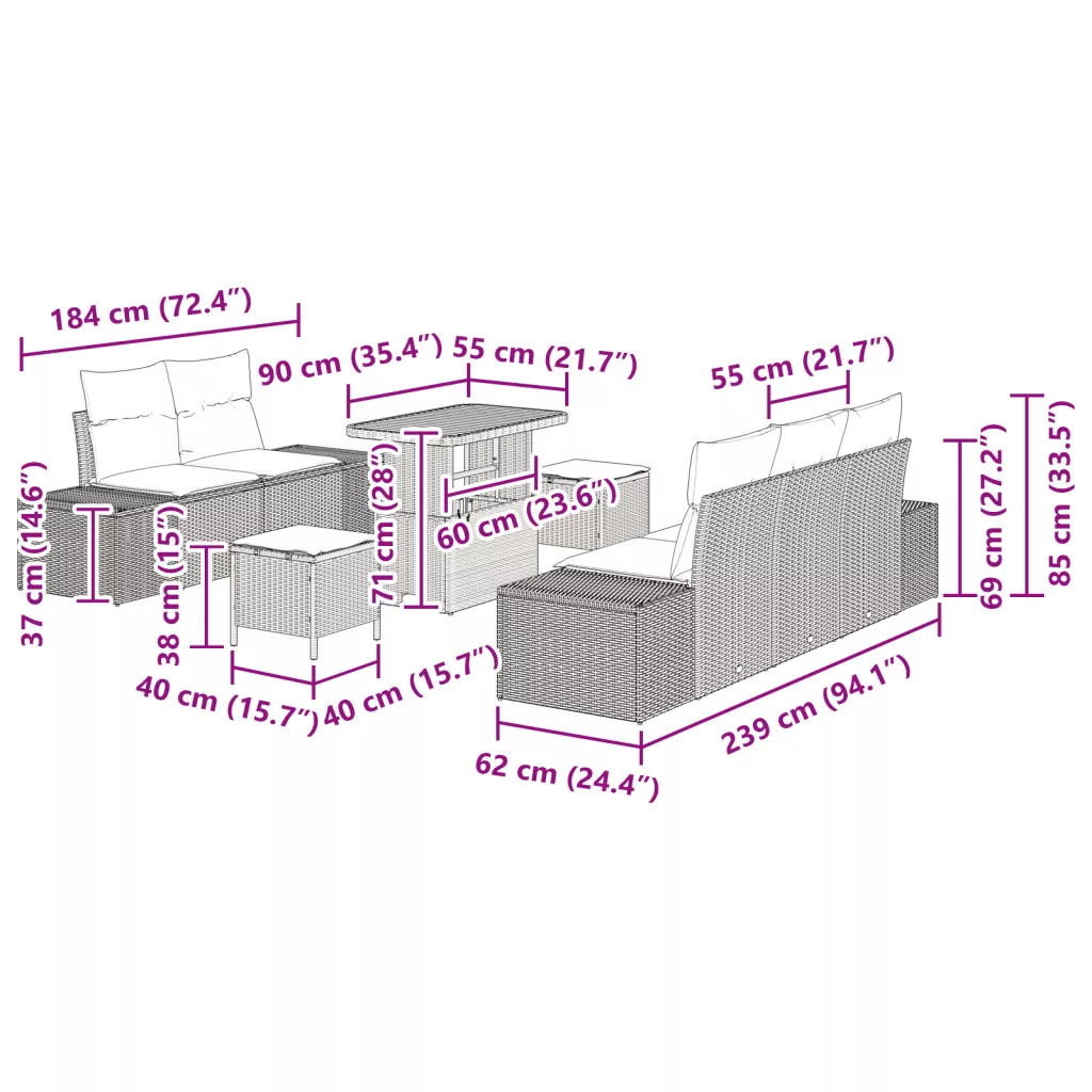 8 darabos kert kanapé szett párnákkal szürke poli rattan akáccal
