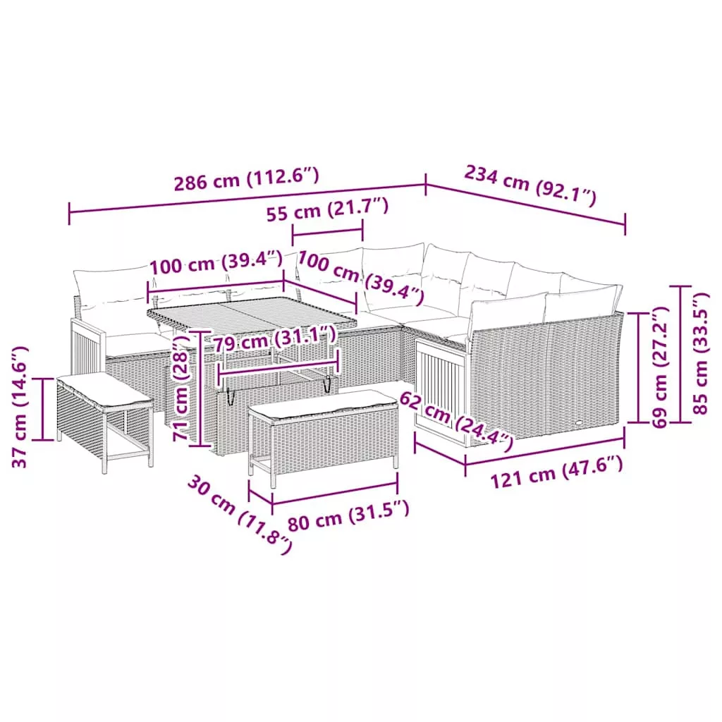 A Modern Kertibútor Szett stílusos menedékké varázsolja kültéri tereidet. Tiszta vonalak és elegáns egyszerűség jellemzi, ami kényelmet és praktikumot biztosít. Nagyszerű kerti vagy teraszgyűlésekhez, mivel az állítható asztal egyszerűen átváltható kávézó- és étkezőasztal között. Korszerű megjelenésével és tartós anyagaival remek választás bármilyen kültéri térhez. Anyagok: A szett polirattan és porfestett acél jól néz ki és tartós is. Ezek az anyagok ellenállnak az időjárási viszonyoknak, miközben modern megjelenést adnak. A rattan klasszikus hatása remekül passzol a kortárs stílushoz, míg a porfestett acél fokozza a szilárdságot, így évszakokon át megőrzi szép külsejét. Beépített elemek: A szett poliészter szálakkal kárpitozott kényelmes üléseket kínál, ami biztosítja a jó párnázottságot. A háttámla szép és mutatós polirattanból készült, ami stílusos és kényelmes is. A karfák és felületek tömör akácfából készültek, amely egy természetes és bájos eleganciát ad, harmonizálva a kültéri terekkel. Funkciók /Design: Az állítható asztal lehetővé teszi a kávézó-étkező dizájn könnyű variálását, ami sokoldalú élményeket teremt a szabadban. Könnyű szerkezetének köszönhetően könnyen mozgatható, ami jól jön családi összejövetelek vagy partik során. Ráadásul az UV-álló anyagok védelmet nyújtanak a napsugárzás ellen, hosszú élettartamot garantálva. Ajánlott felhasználások: Ez a moduláris szett kiválóan illik kertekhez, teraszokhoz, ahol bármilyen szórakoztatásra vagy pihenésre alkalmas. Kortárs stílusa sokféle kültéri díszhez illeszkedik. Legyen szó baráti összejövetelről vagy kényelmes pihenőről, ez a szett zökkenőmentesen alkalmazkodik az igényeidhez. Rendszeres karbantartás: A bútor védelme szuper egyszerű; a kültéri bútorokhoz használj huzatokat, hogy tovább bírják. Könnyen letisztíthatod, ha csak törlöd egy száraz kendővel. Ráadásul a huzatokat zord időben védd, hogy frissek maradjanak. A jó anyagok minimális gondozást igényelnek, így a szett sok szezonon át szépen néz ki.