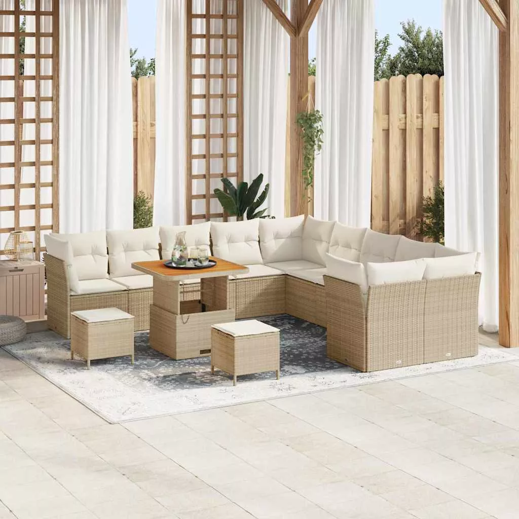 Kerti Kanapé Szett párnával 13 pcs Beige és krém polirattan