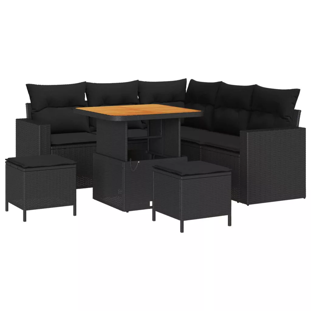 Kerti Kanapé Szett párnával 9 pcs Fekete polirattan