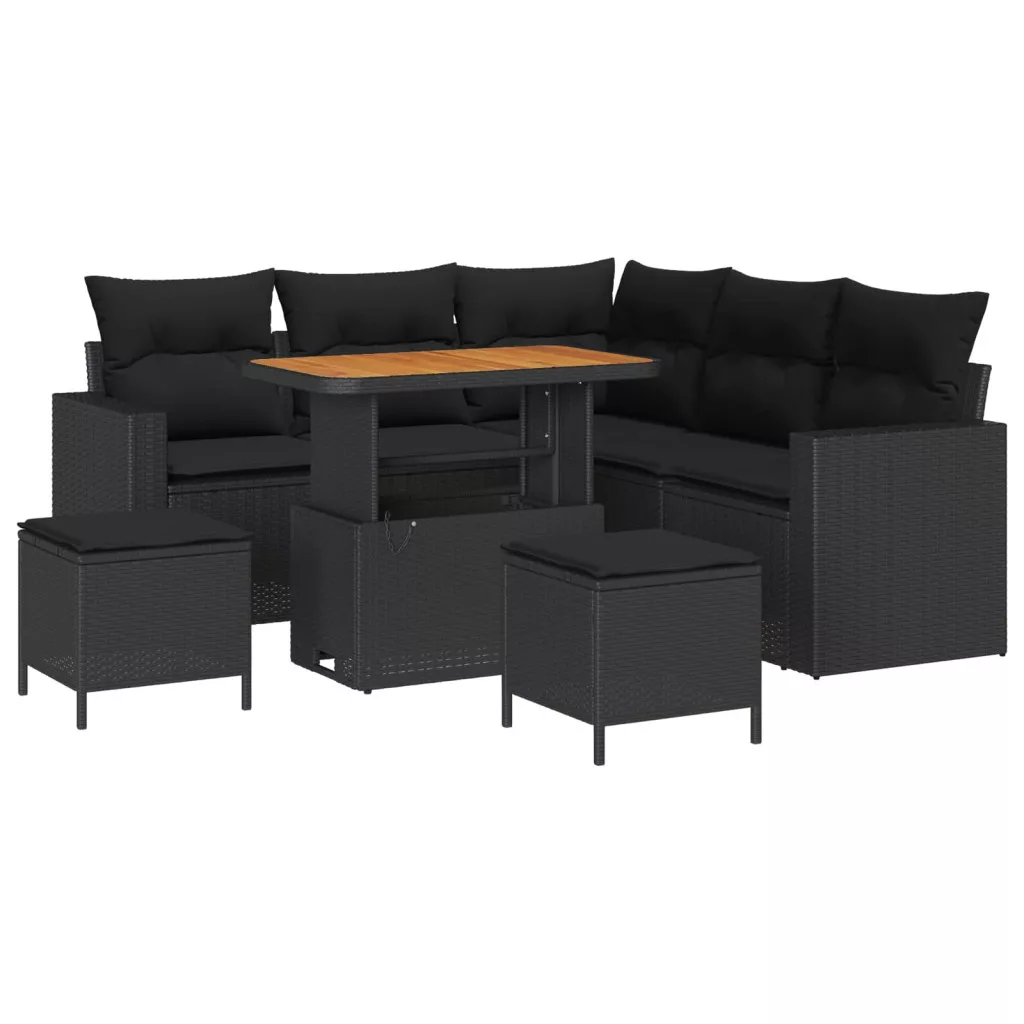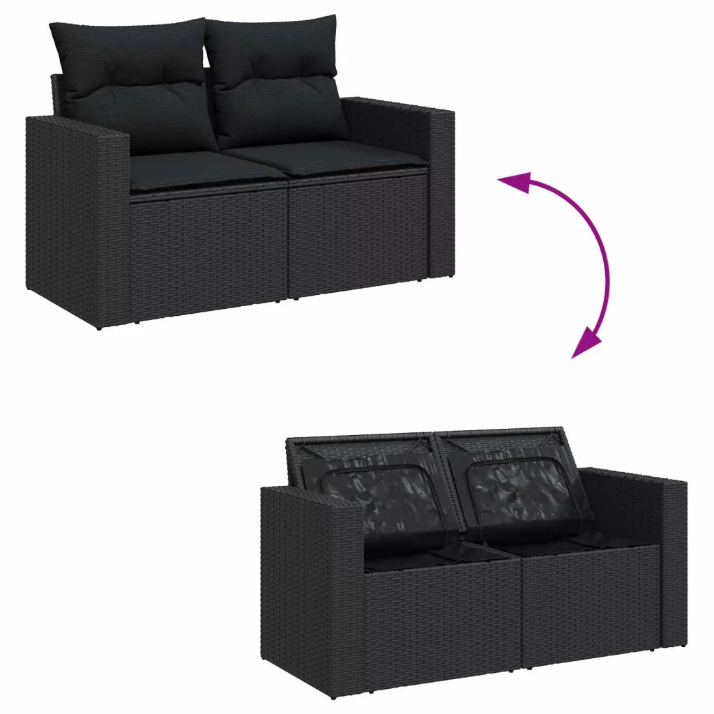 Kerti Kanapé Szett párnával 9 pcs Fekete polirattan