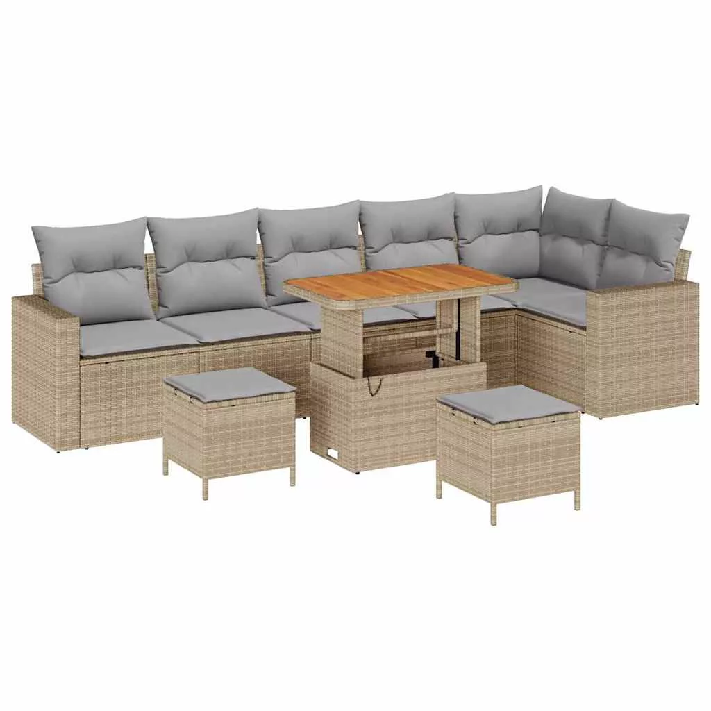 Kerti Kanapé Szett párnával 9 pcs bézs és világosszürke
