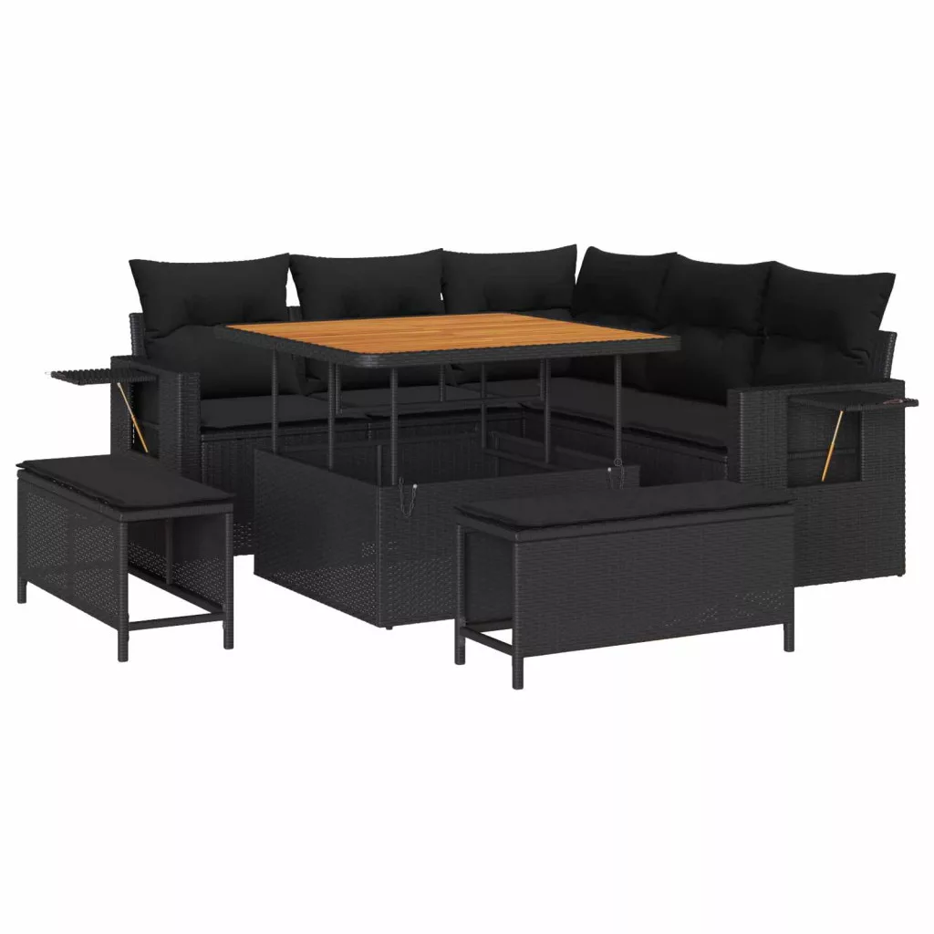Kerti Kanapé Szett párnával 9 pcs Fekete polirattan