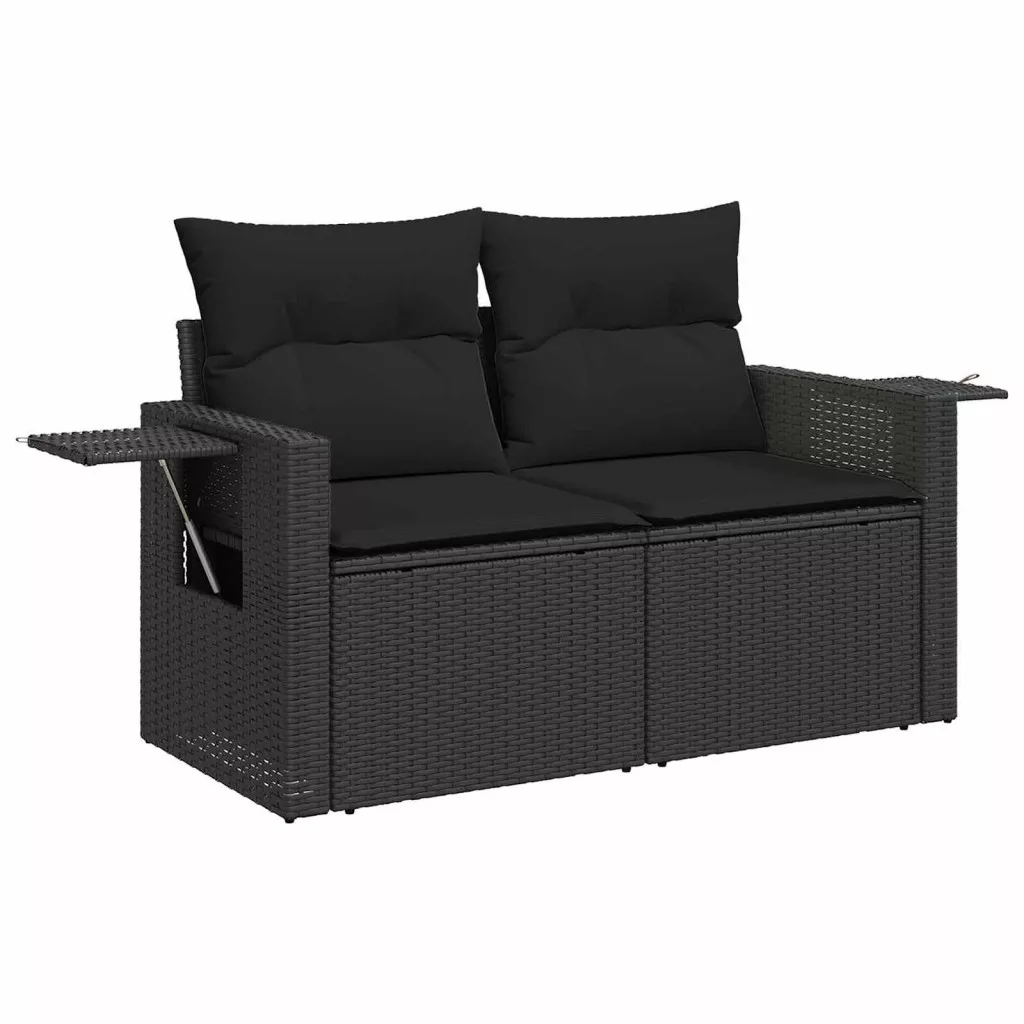 Kerti Kanapé Szett párnával 9 pcs Fekete polirattan