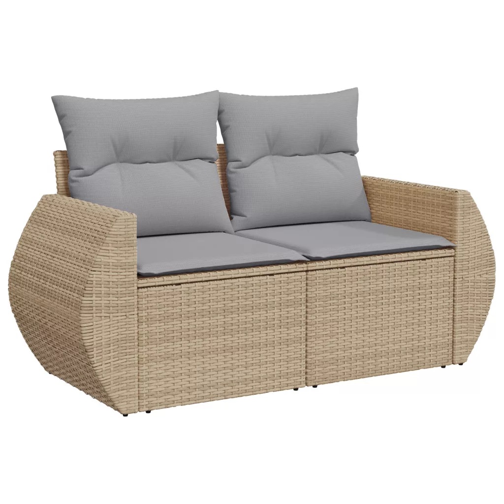 8 Részes Kerti Kanapé Szett Párnákkal Bézs Poli Rattan Akác
