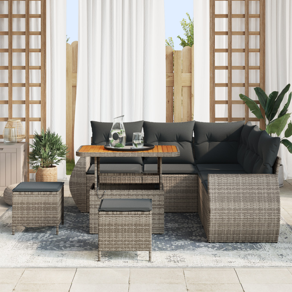 8 Darabos Kert Kanapé Készlet Párnákkal Szürke Poli Rattan Akácia