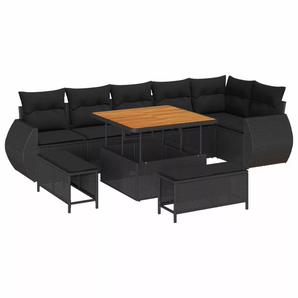 Kerti Kanapé Szett párnával tárolóval 9 pcs Fekete Poly Rattan
