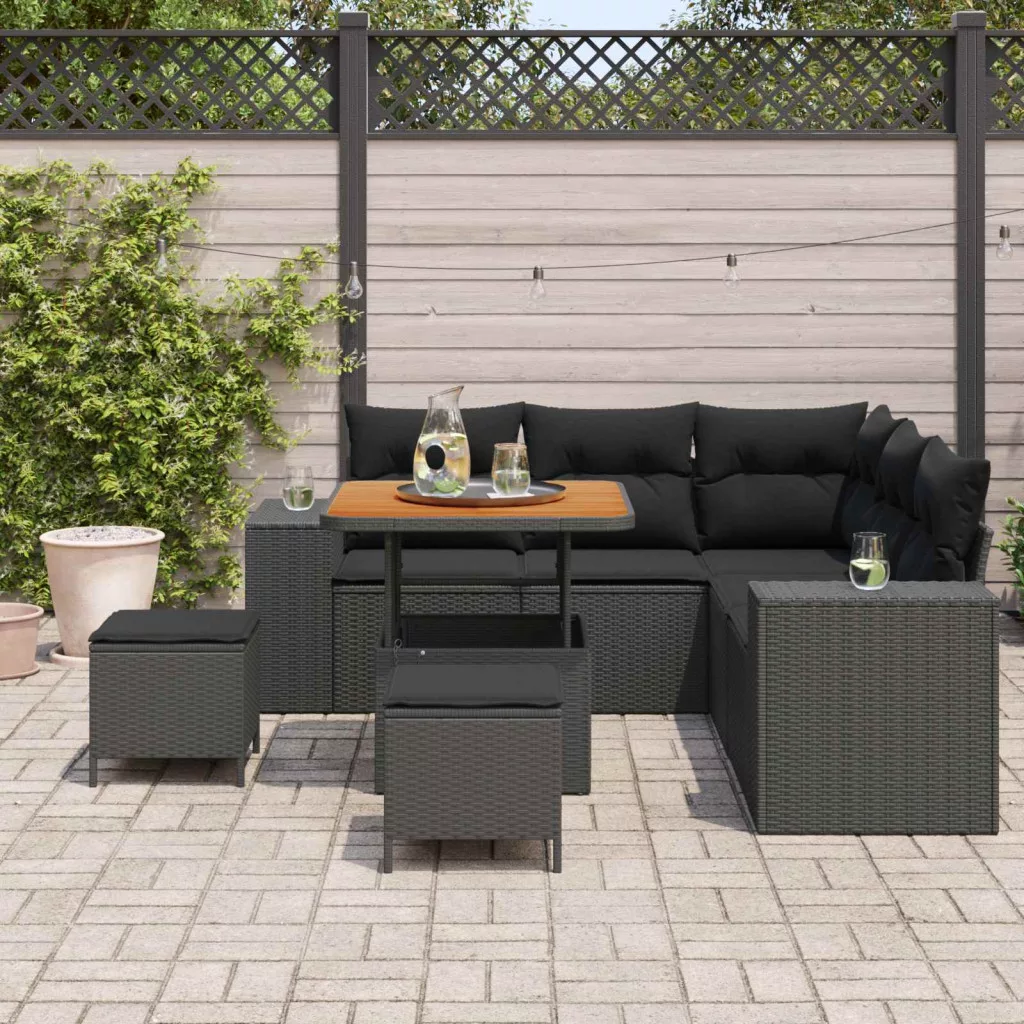 Kerti Kanapé Szett párnával tárolóval párnával 8 pcs Fekete