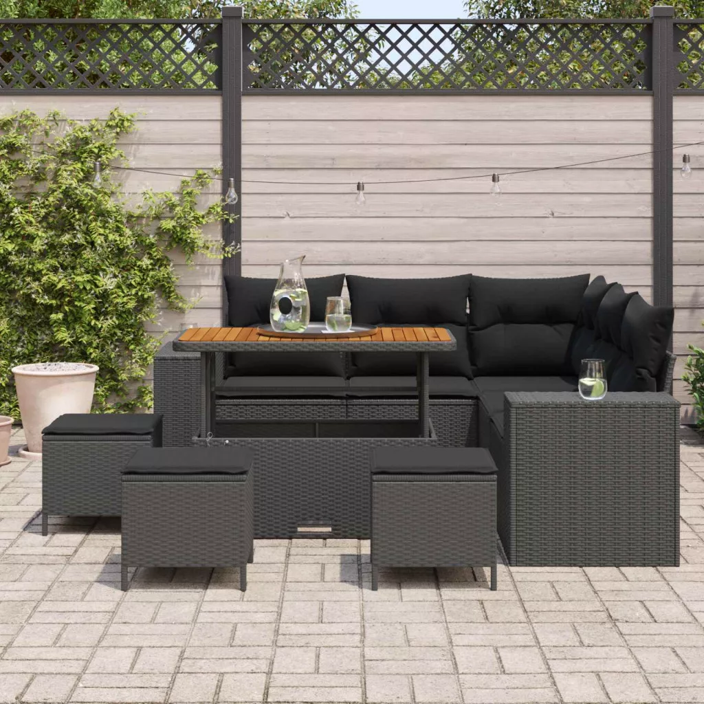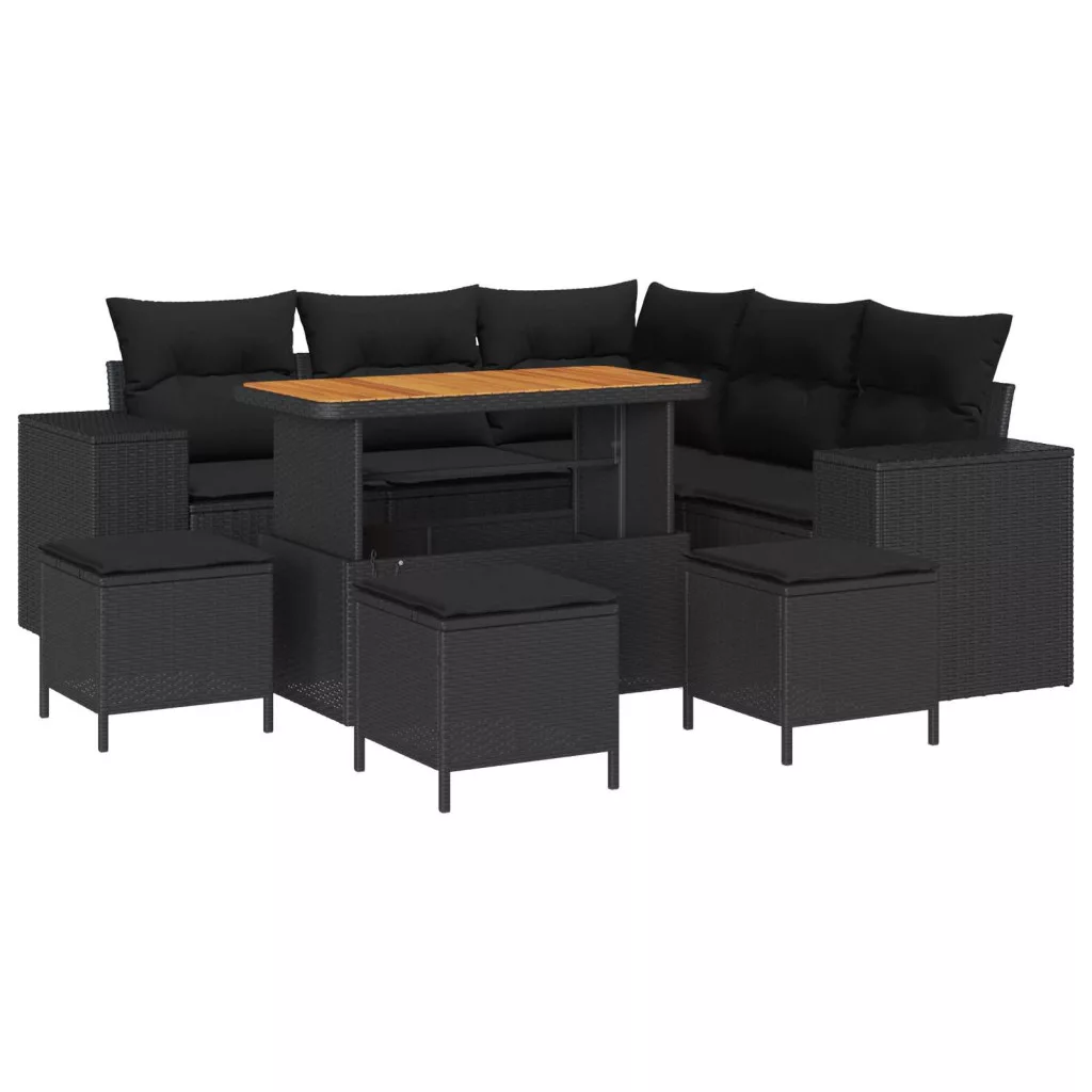 Kerti Kanapé Szett párnával tárolóval párnával 9 pcs Fekete