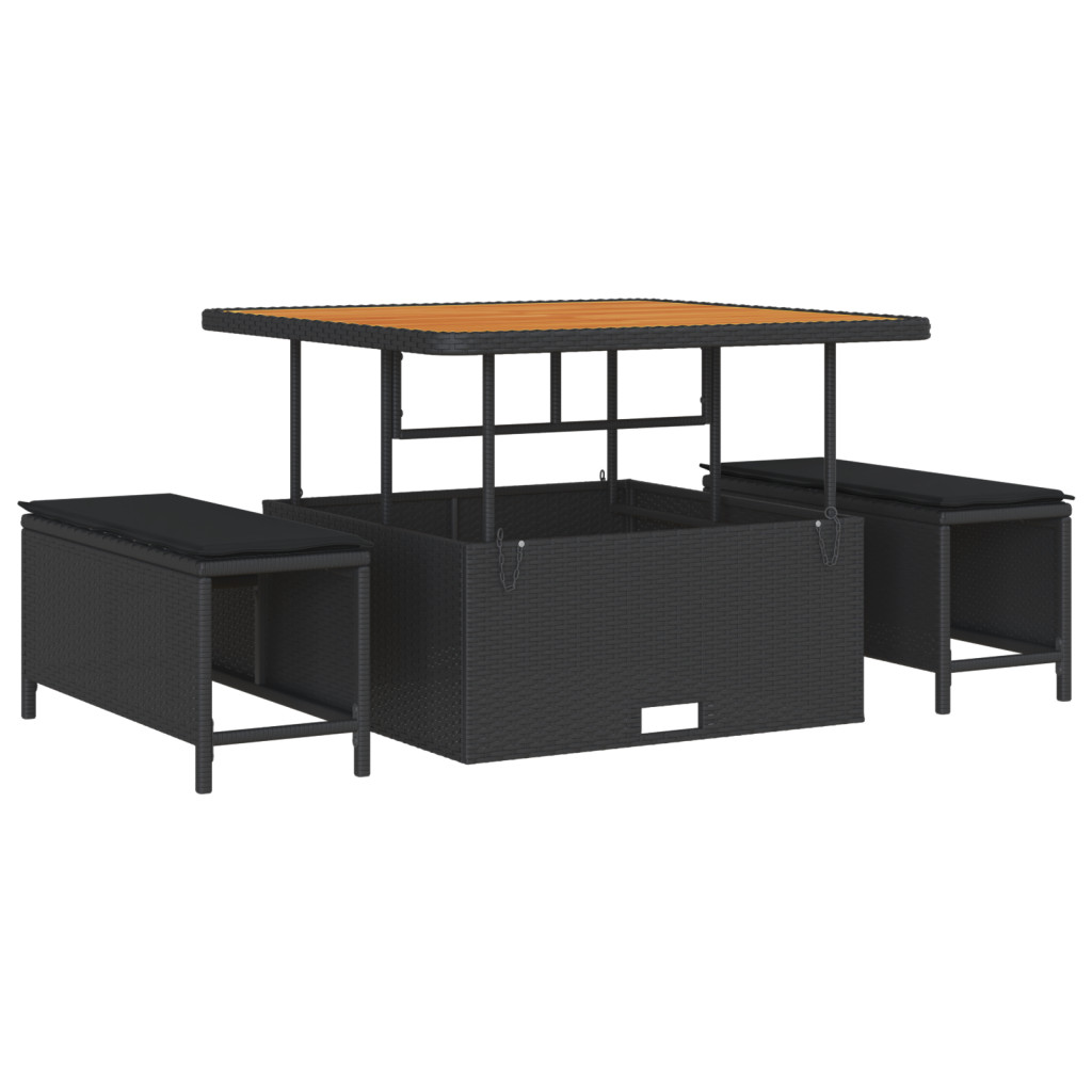 11 Darabos Kerti Kanapé Szett Párnákkal - Fekete Poli Rattan Akácia