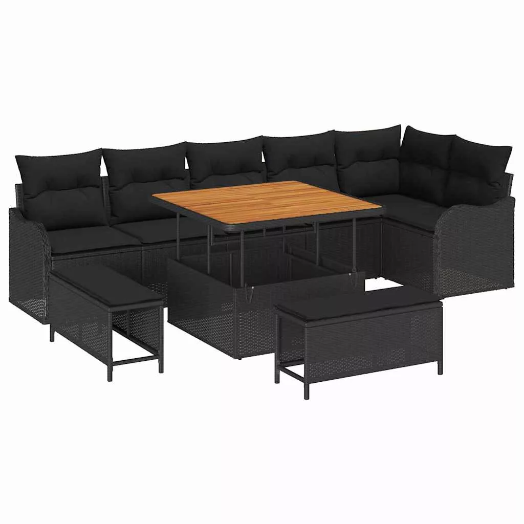 Kerti Kanapé Szett párnával tárolóval párnával 9 pcs Fekete