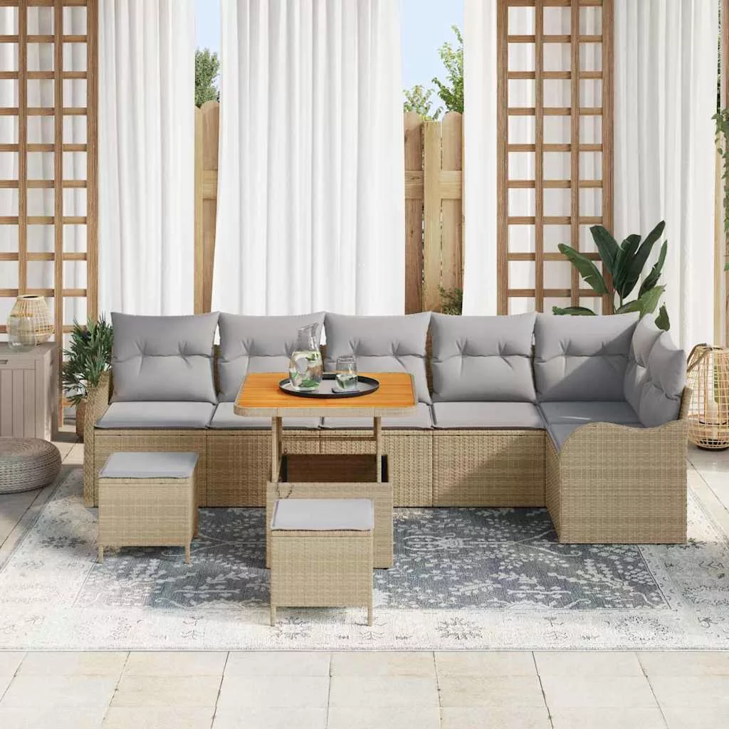 Kerti Kanapé Szett párnával 9 pcs Beige és Világosszürke