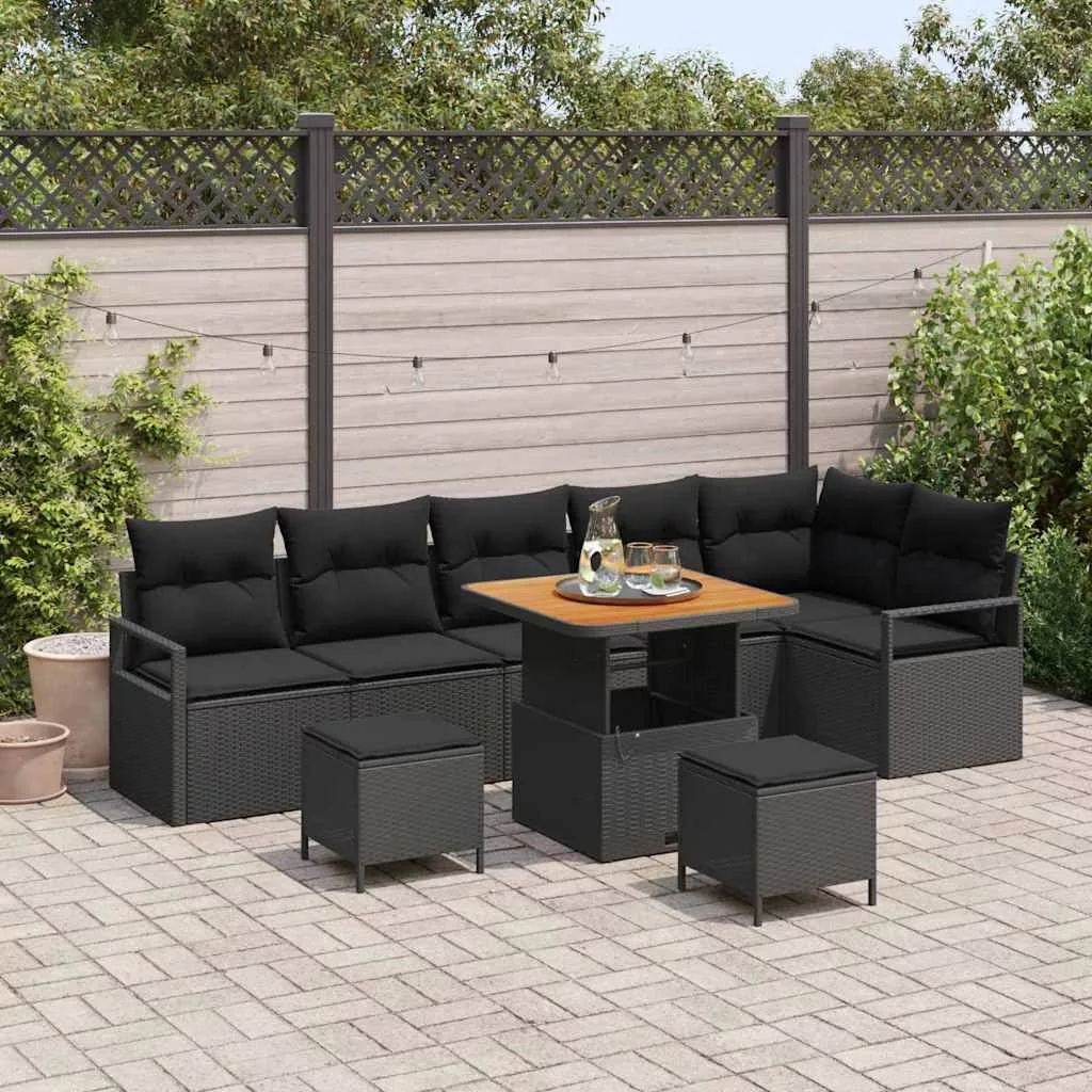 Kerti Kanapé Szett párnával tárolóval párnával 9 pcs Fekete