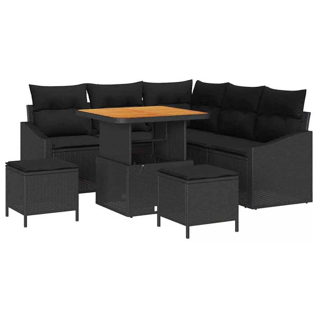 Kerti Kanapé Szett párnával tárolóval 8 pcs Fekete Poli rattan
