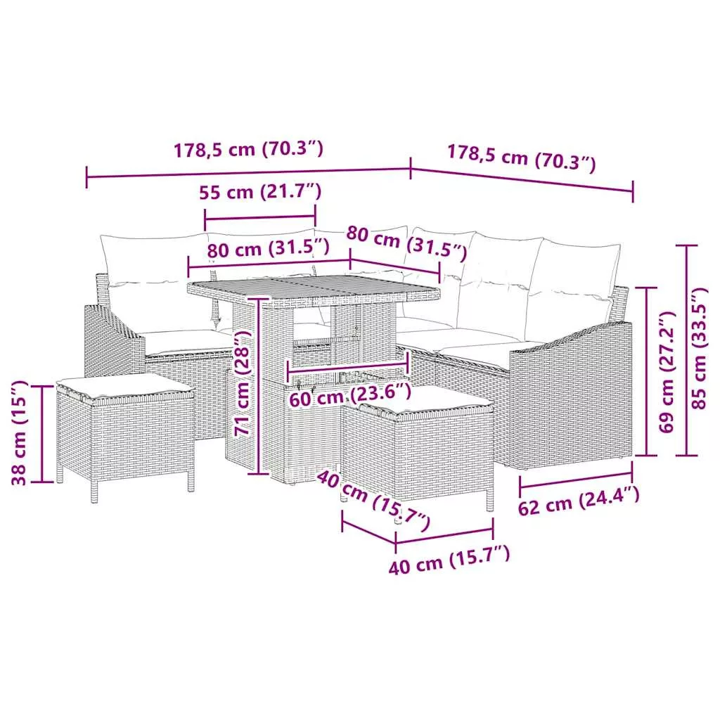 Kerti Kanapé Szett párnával tárolóval párnával 8 pcs Szürke