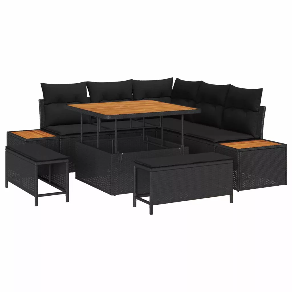 Kerti Kanapé Szett párnával tárolóval 8 pcs Fekete Poli rattan