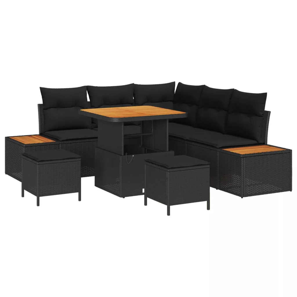 Kerti Kanapé Szett párnával tárolóval 8 pcs Fekete Poli rattan