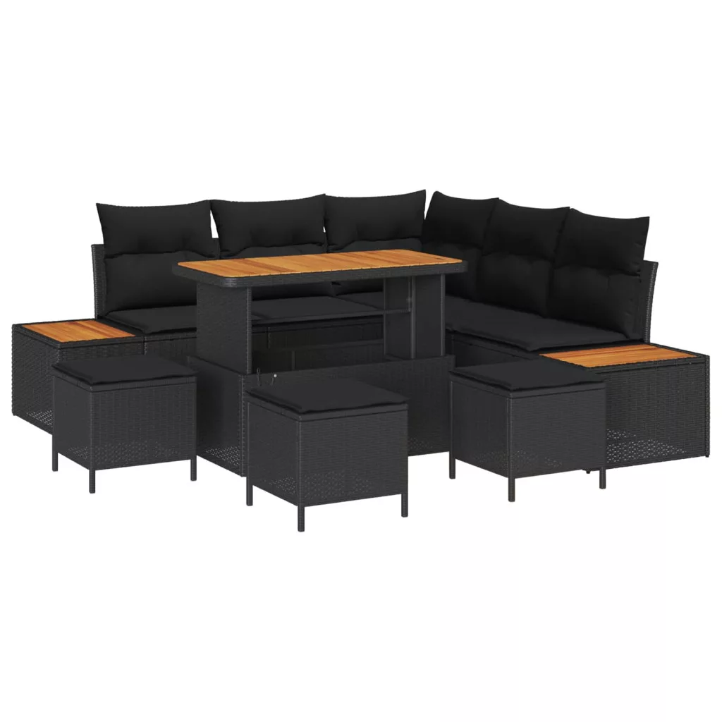 Kerti Kanapé Szett párnával tárolóval 9 pcs Fekete Poli rattan