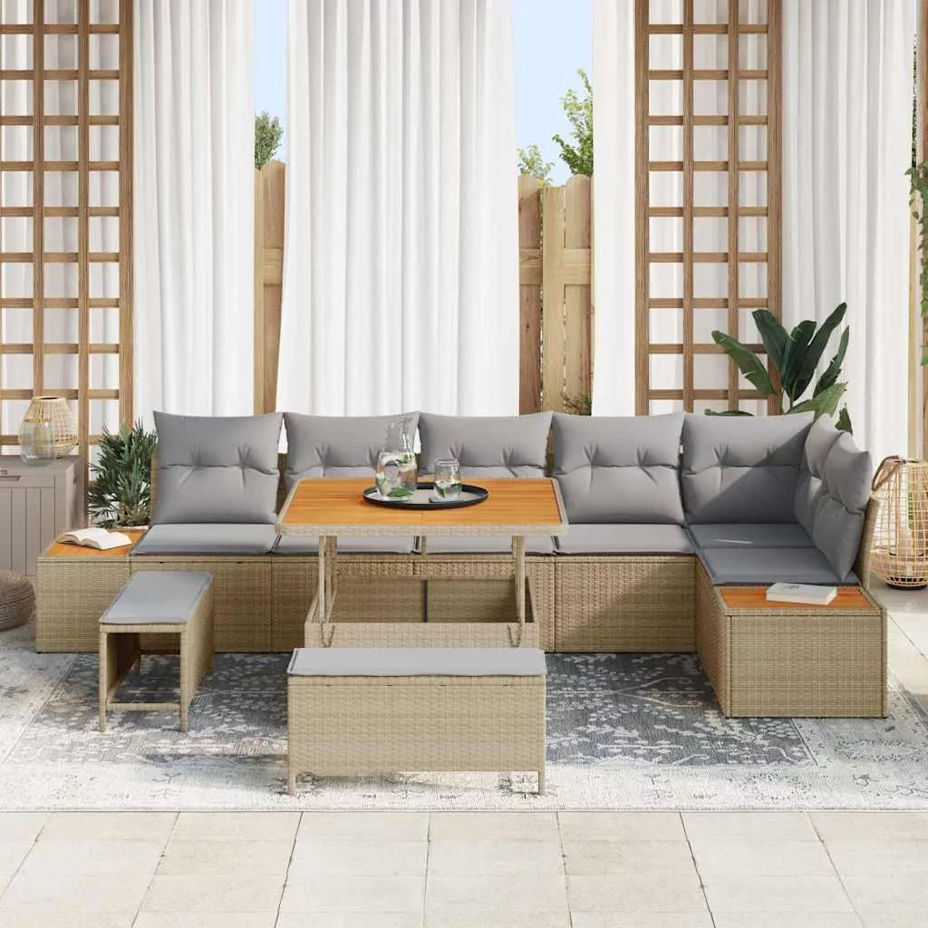 Kerti Kanapé Szett párnával tárolóval 9 pcs Bézs Poli rattan