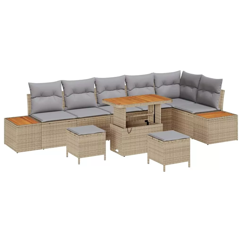 Kerti Kanapé Szett párnával tárolóval 9 pcs Bézs Poli rattan