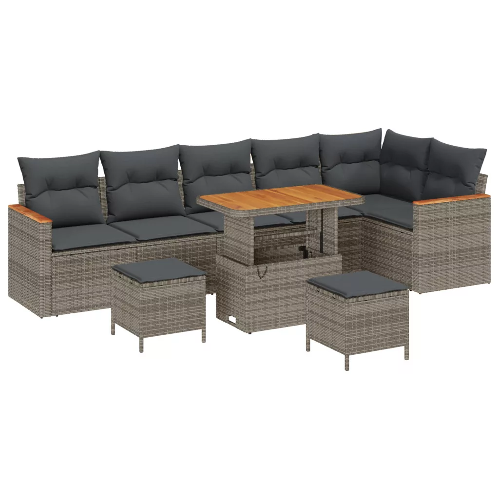 9 darabos Kerti Kanapé Szett párnákkal Szürke Poli Rattan Akác
