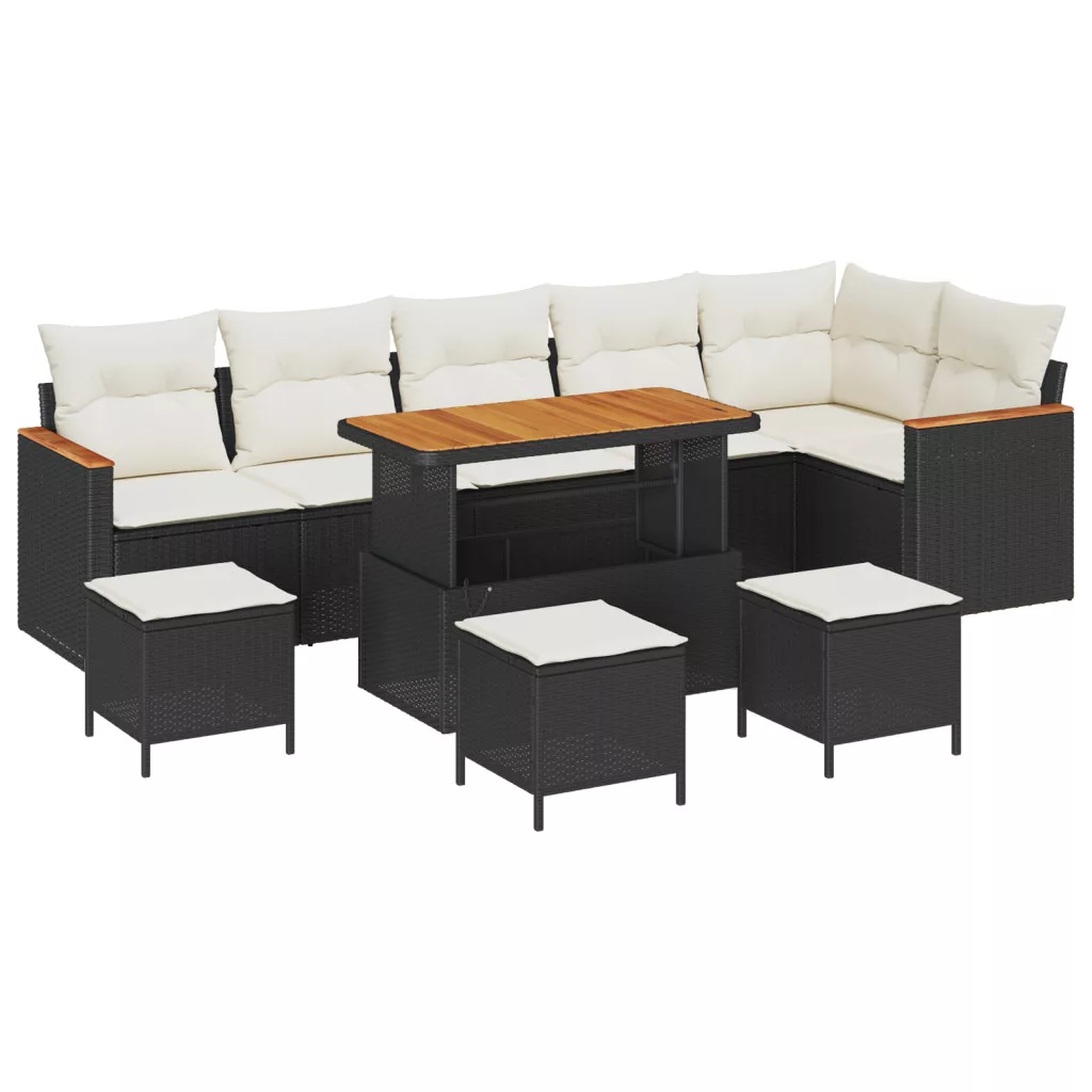 10 darabos kerti kanapé szett párnákkal fekete poli rattan akác