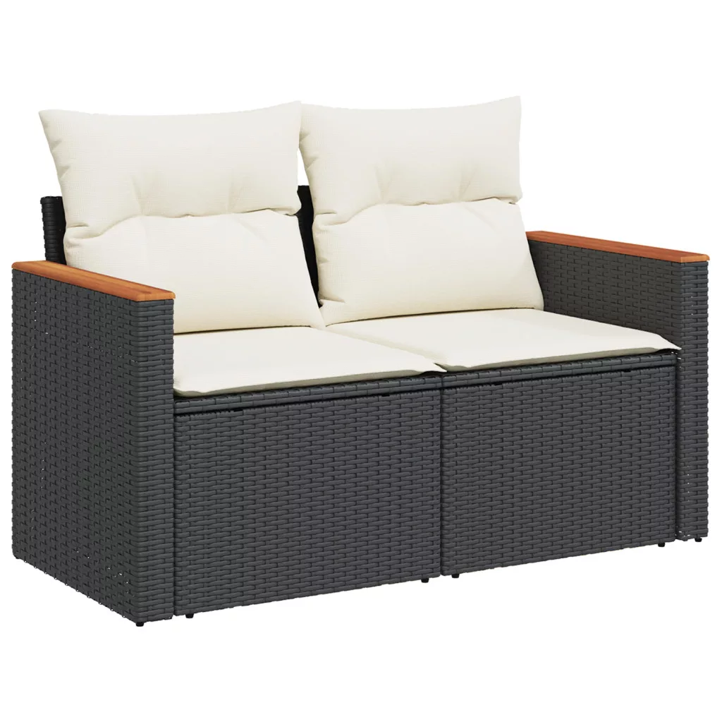 12 darabos kerti kanapé szett párnákkal Fekete Poli rattan Acacia