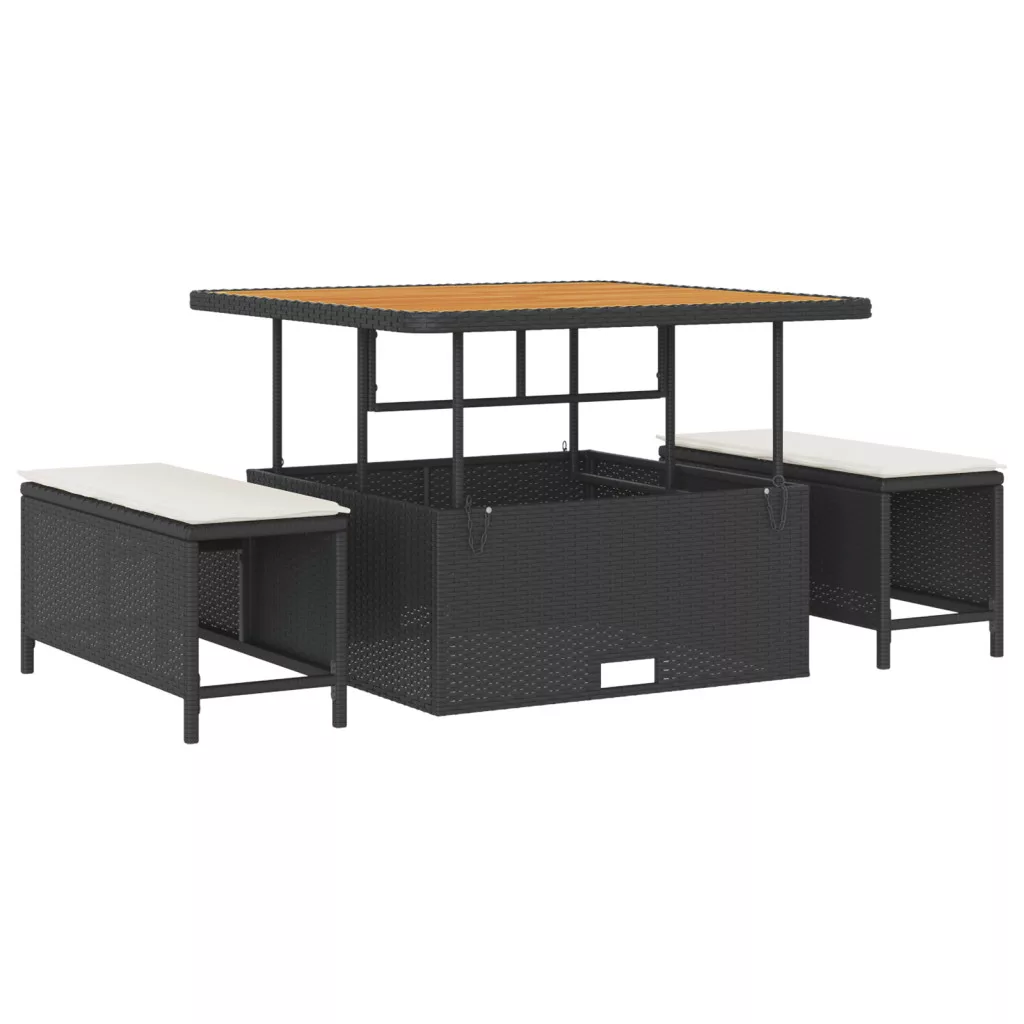 8 darabos kerti kanapé szett párnákkal fekete poli rattan akáccal
