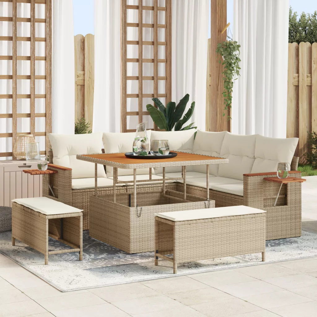 8 darabos Kerti Kanapé Szett párnákkal Bézs Polirattan Akác